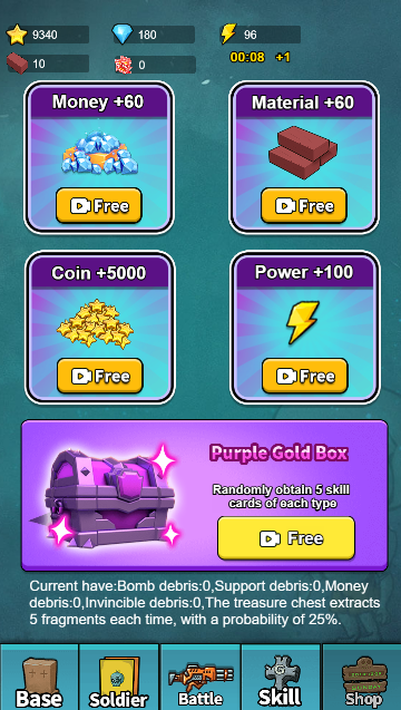 游戏内广告接口已预留好,接入三方SDK可直接使用。