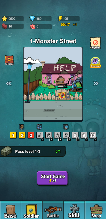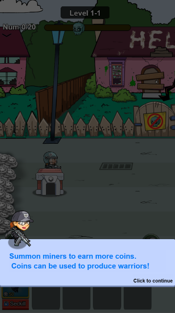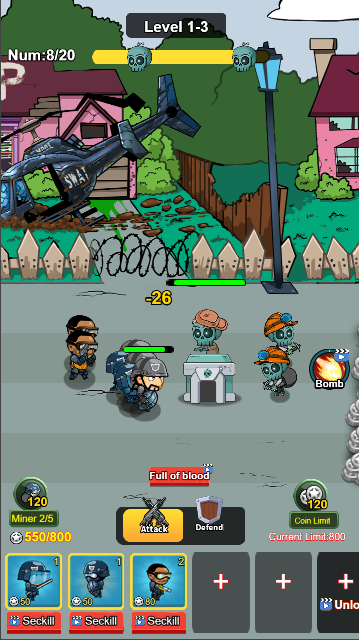 该游戏为人机对战游戏,战斗中与僵尸军团对战,谁先消灭对方即为胜利,合理利用不同兵种和道具保护好基地,关键时候还可以使用超能力技能大幅度提升己方实力,另外基地和兵种也是可以通过升级来提升战力,一个好的开局往往更容易胜利。