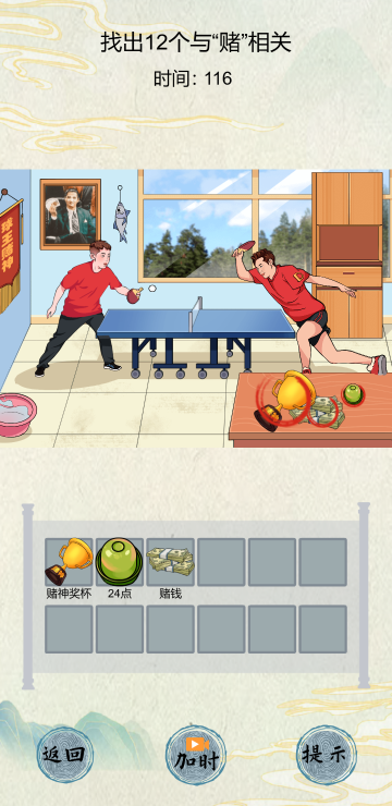 此游戏为休闲益智类游戏,游戏很考验眼力,有很多场景可以玩,比如汉字游戏、找不同等等,你需要在限定时间内全部找到每幅图中需要找出的物品才算胜利,如果有难度记得使用提示功能哦,可以更快的完成关卡。