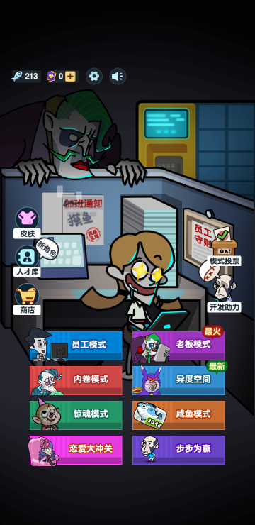 此游戏为休闲类游戏,游戏内你可以尽情摸鱼。每局对战结束可以获取摸鱼币,用于兑换皮肤和道具,在摸鱼中使自己变强大,成为最终的胜利者,还有多个小游戏可以选择,让你的摸鱼快乐加倍!