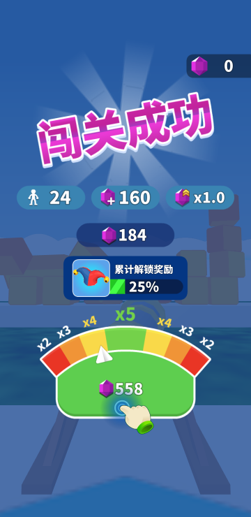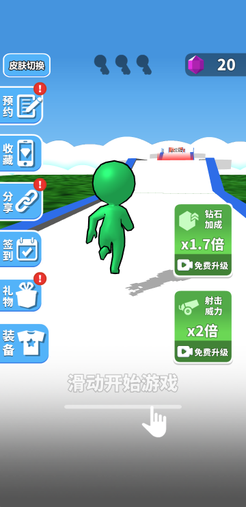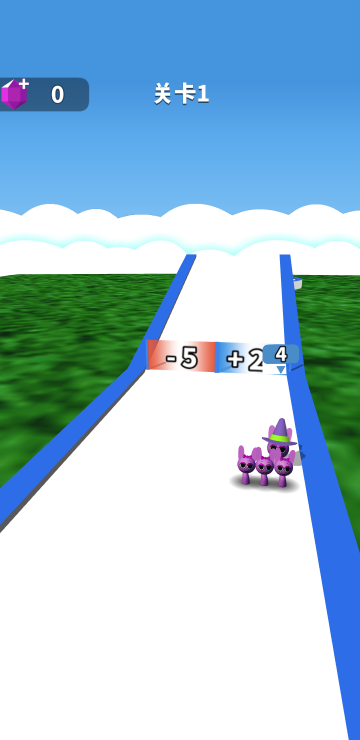此游戏为休闲跑酷类游戏,游戏玩法很简单,每一关的道具都是随机的,你需要控制角色移动来增加人数并躲避障碍,最终抵达终点的人数关系到能够获取到的奖励,人数越多额外奖励越高,还可以在前进过程中获取钥匙,三把钥匙能够额外开启宝箱获取更多奖励。