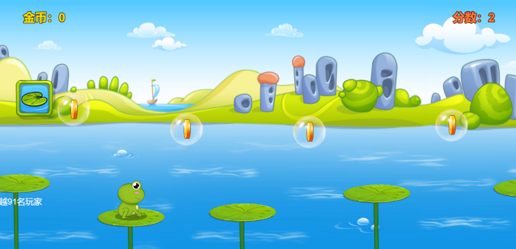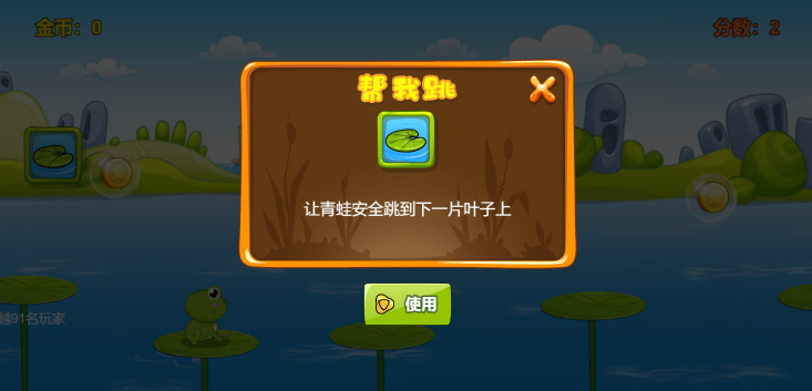 此游戏为休闲类游戏,游戏玩法类似跳一跳,但是需要控制好角度和力度,确保青蛙能够跳到下一片荷叶,如果觉得很困难可以使用道具。这个小游戏很适合小朋友的。