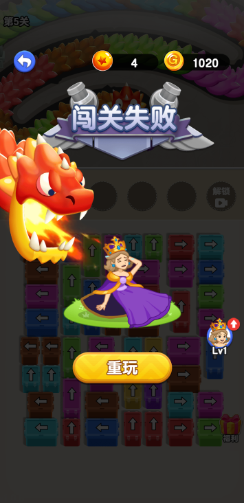 此游戏为休闲消除类游戏,游戏中一条龙追着女孩在跑,我们需要通过不同颜色来架设炮台消灭这条龙拯救女孩,要注意箭头的方向是否能够移出,还可以通过升级女孩的属性,以及更换女孩皮肤等多项功能等你来体验。
