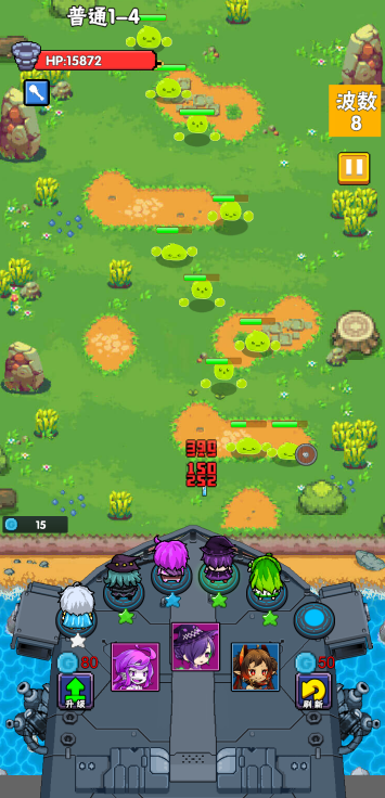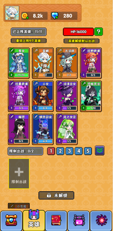 此游戏为休闲塔防类游戏,游戏中会不断有怪物来攻打基地,你需要选择英雄上阵来消灭它们,不同的英雄有不同的属性,合理搭配会最大化攻击,你还可以通过抽卡来收集英雄,已上阵英雄再次选择就可以升级,威力更大,关卡多多,快来挑战吧。