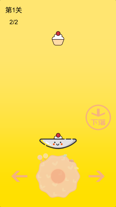 该游戏为休闲放置游戏,食物从空中掉落,可以左右移动方向,但是要确保掉进碗里,如果不小心掉出碗就游戏失败了。