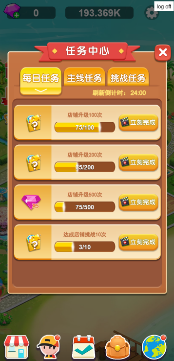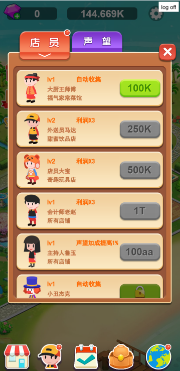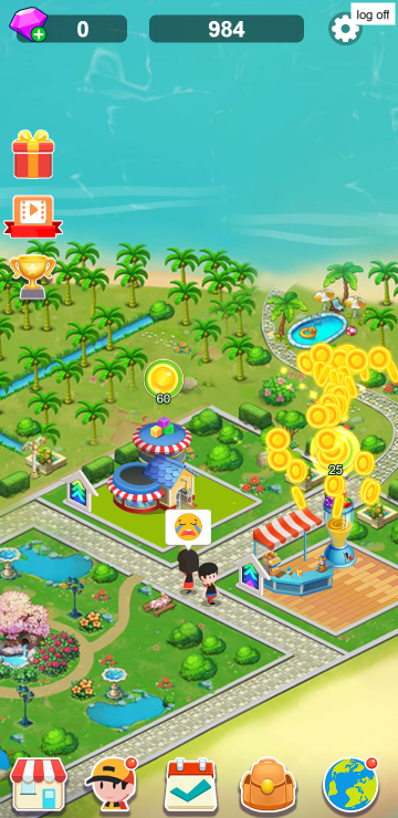 该游戏为休闲养成游戏,游戏内可以创建不同的设备赚取金币,还可以雇佣伙计自动收取金币,设备通过升级可以赚取更多金币,还可以在不同地图完成指定任务重重闯关哦。