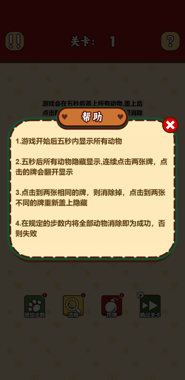游戏内容为三种一样的动物同在状态栏即可消除,当状态栏满且没有可以消除的情况即为失败,游戏分为闯关模式和挑战模式,合理使用道具游戏更加愉快。