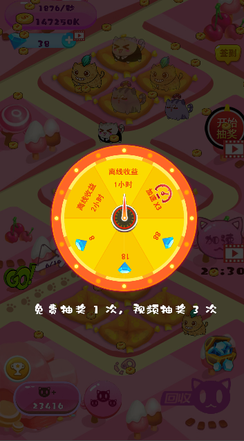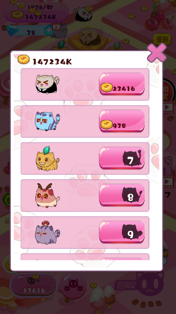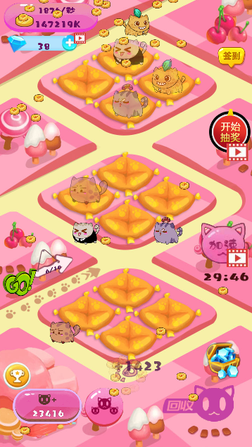 低级猫咪可以合成高级猫咪,不同猫咪在跑道运行获取的金币不一样,等级越高收益越高,金币可以用来从商城购买猫咪,共有30只猫咪可以养成哦,一只比一只漂亮。