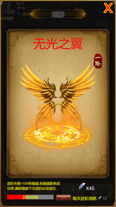这是一个挂机游戏,游戏内角色可以用装备来提升战力,战力越高打怪越轻松,通过抽奖可以概率获得高等级装备,副本也会掉落各种道具,用来升级翅膀技能的属性和品质,另外商店也可以买到你想要的物品。