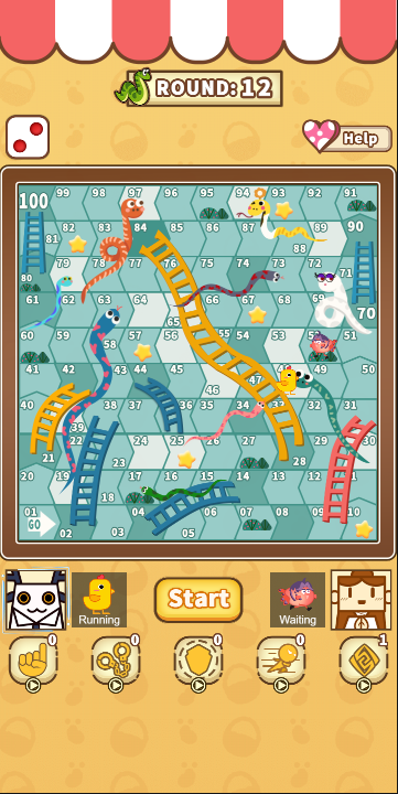 此游戏为双方对战,谁先到达数字100即为胜利,对战过程中,如果遇到梯子则可以直达梯子最顶端,如果遇到蛇不使用防护盾的情况下会掉落到蛇尾,合理使用道具可以更容易获取胜利,还有多款棋子皮肤等你选择哦。