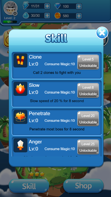 使用金箍棒击打怪兽,在合理使用掉落的道具的情况下,尽快消灭所有怪兽,认真查看道具说明有助于提升游戏体验哦,并且游戏是有时间限制的,动作一定要快!