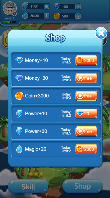 游戏内广告接口已预留好,接入三方SDK可直接使用。