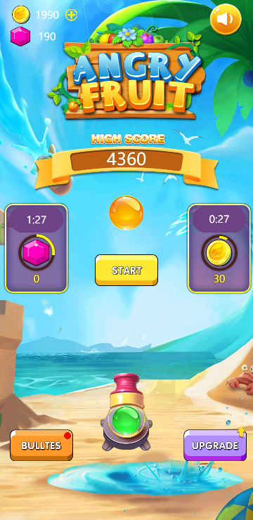 此游戏为休闲类游戏,游戏语言为英文版,关卡共有35关,每一关的目标都相同,那就是把水果消灭,在水果周围会有不断移动的阻碍,记得开准时机在开炮哦,玩起来非常解压呢。