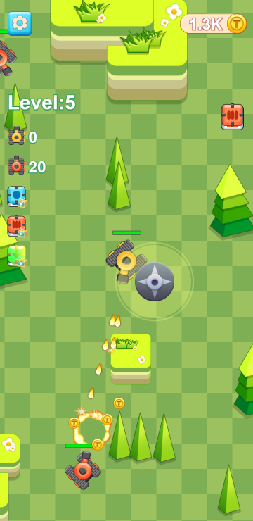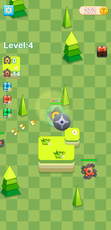 此游戏为休闲射击类游戏,游戏中你可以通过遥感来控制坦克的方向,每关的目标都一致,就是消灭所有敌对坦克,你可以通过过关解锁高级坦克或者提高火力来提升实力,以便在后面的关卡更容易取得胜利。